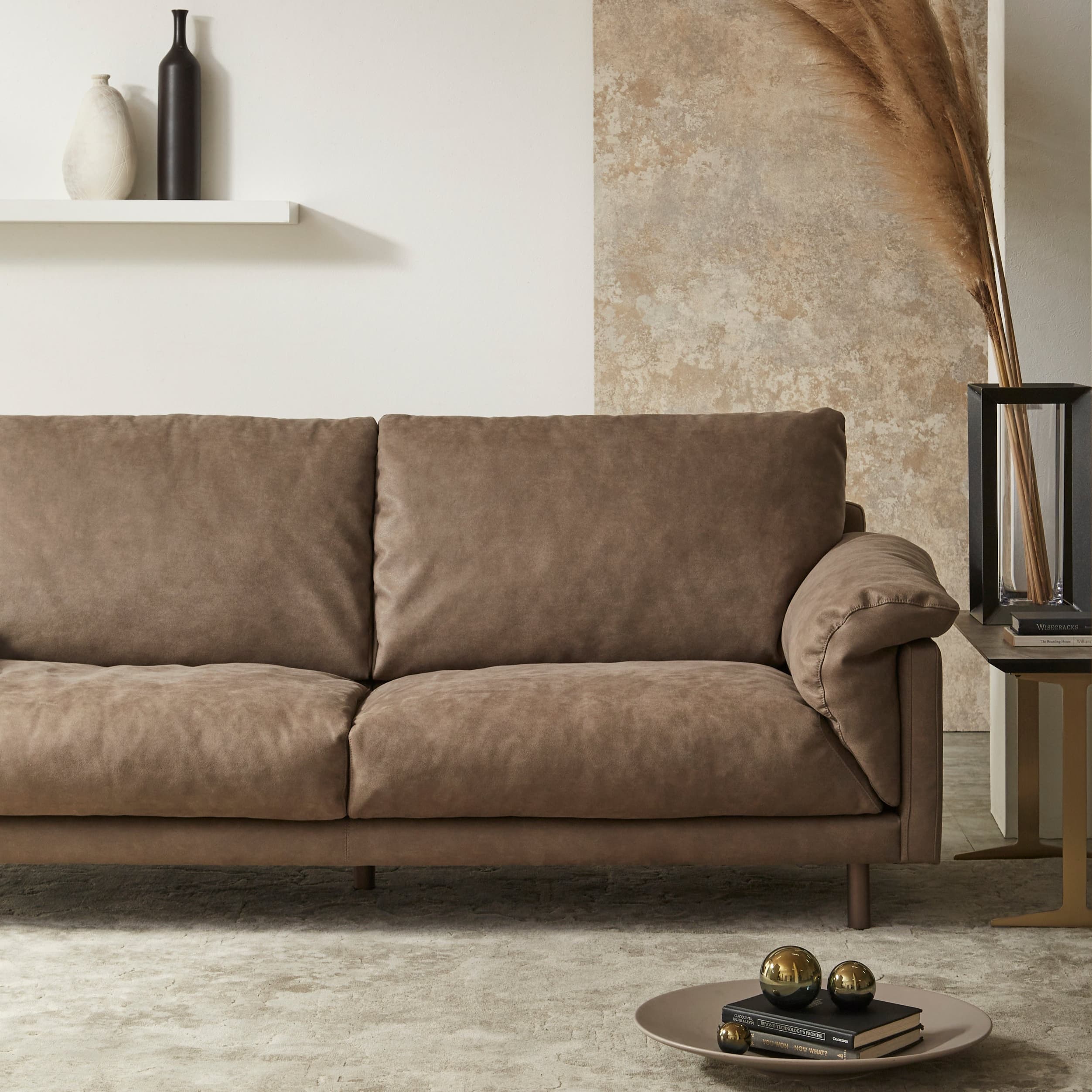 高品質な張地は、テキスタイルデザインや質感にこだわり、触れるたびに心地よさを感じさせます。また、長年のソファ製作経験を持つスタッフが、生産から管理まで丁寧に手掛け、主にアジア圏で生産することで、ひとつひとつのソファに想いを込めています。