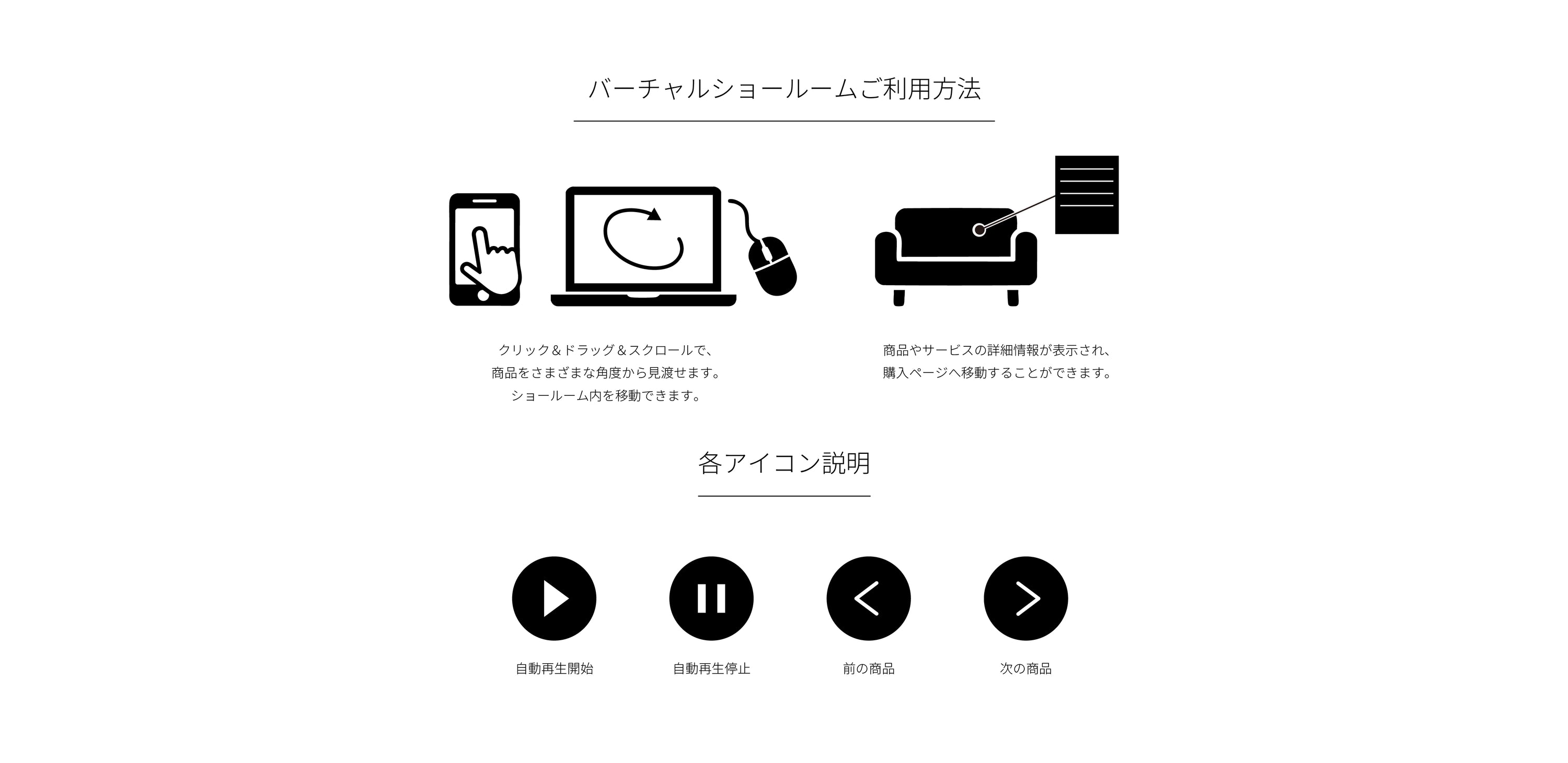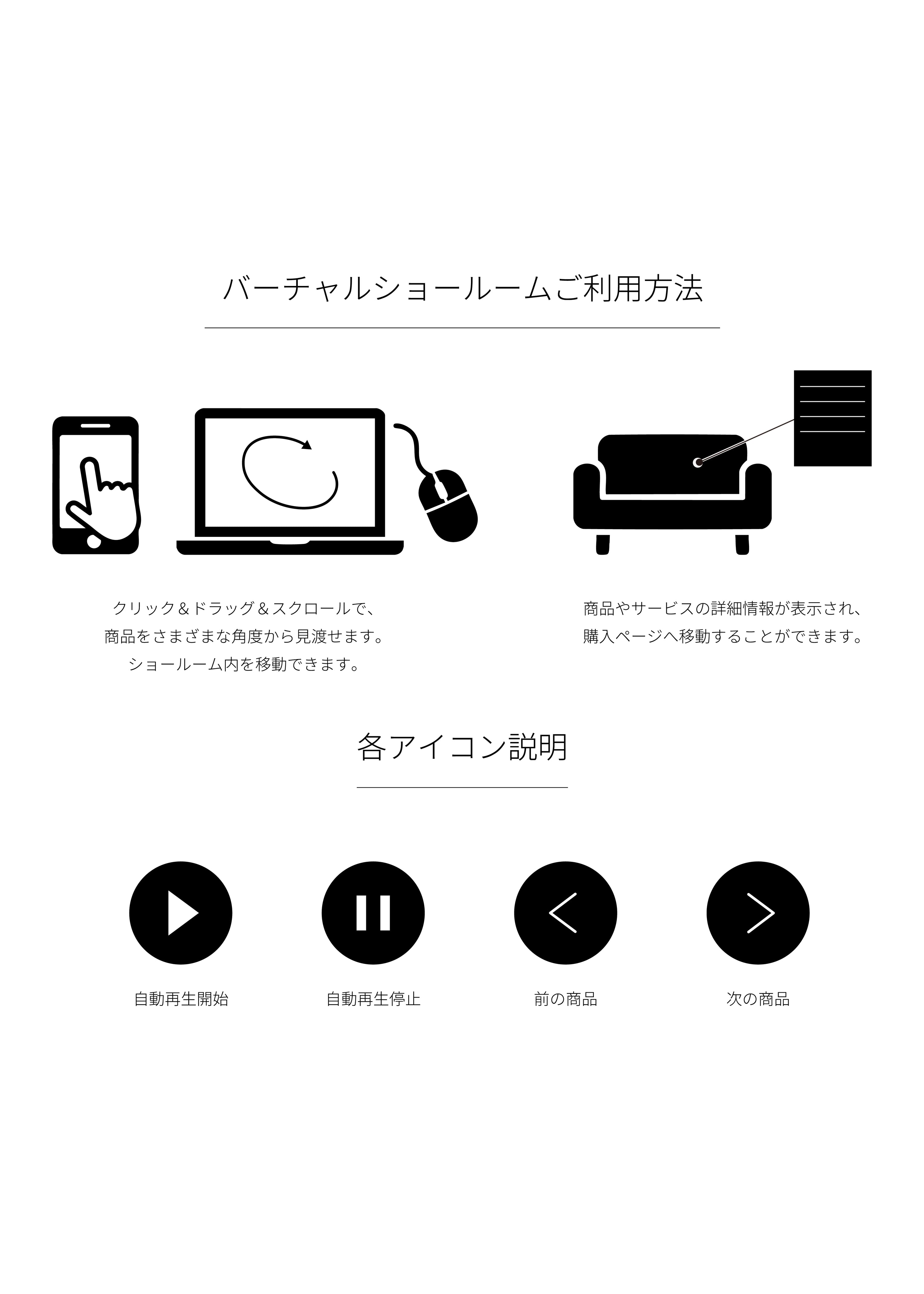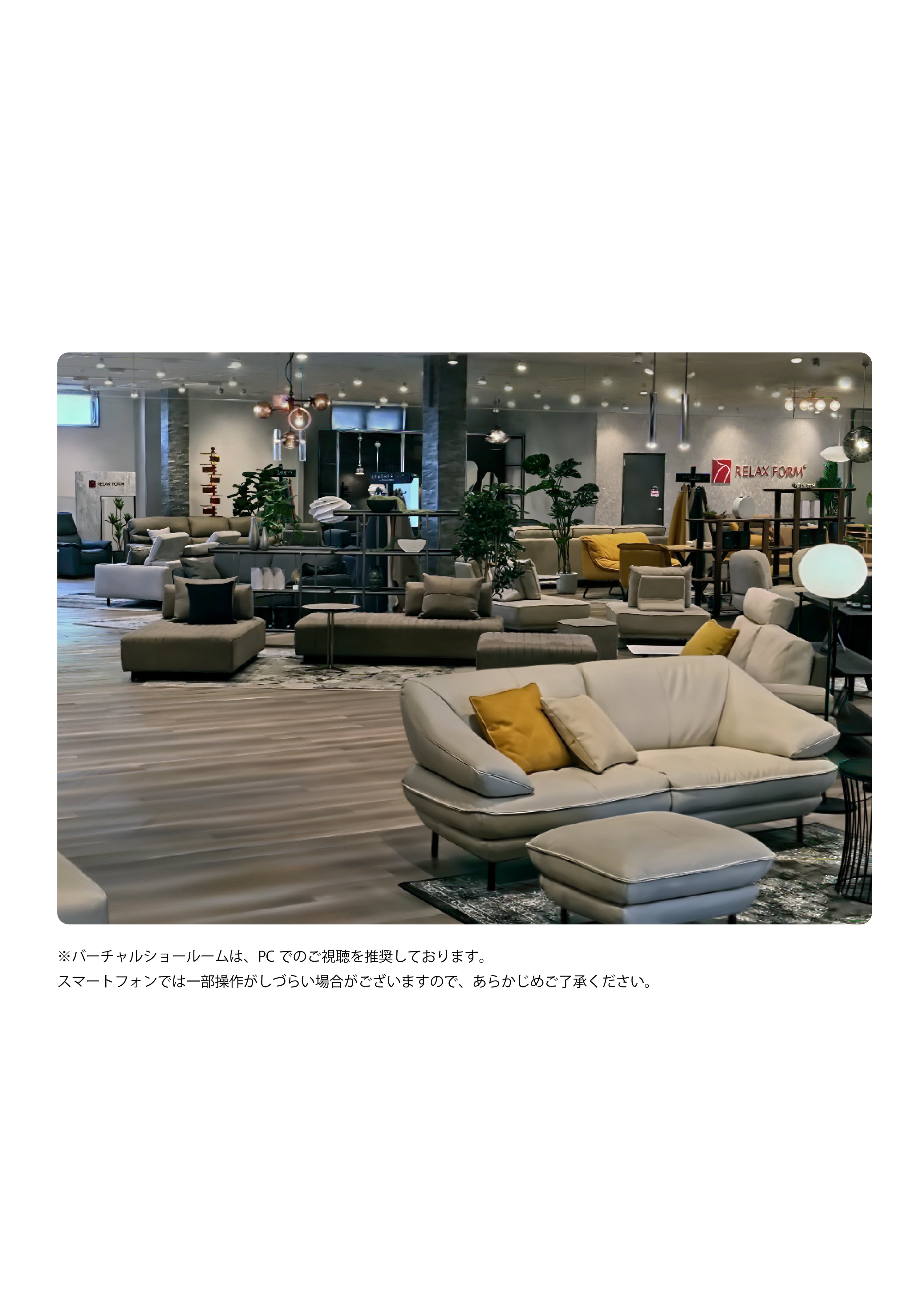 RELAX FORM®のショールーム空間を、 パソコンやスマートフォンから自由にご見学いただけます。