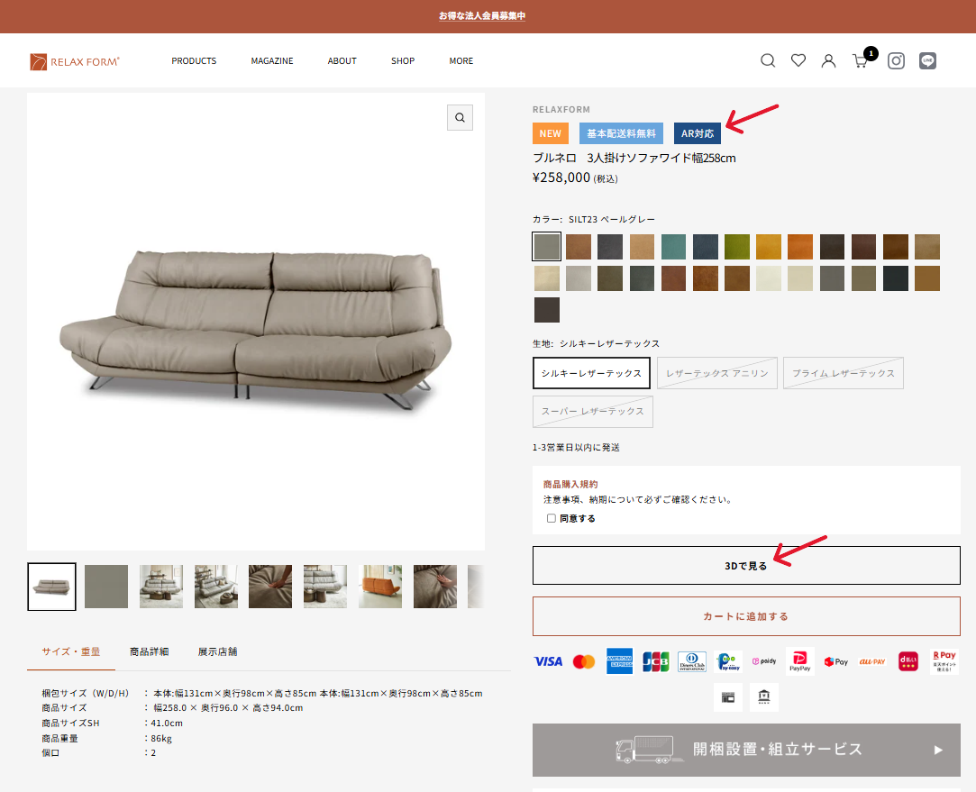 RELAX FORM®/リラックスフォームの3D・AR機能サービス説明