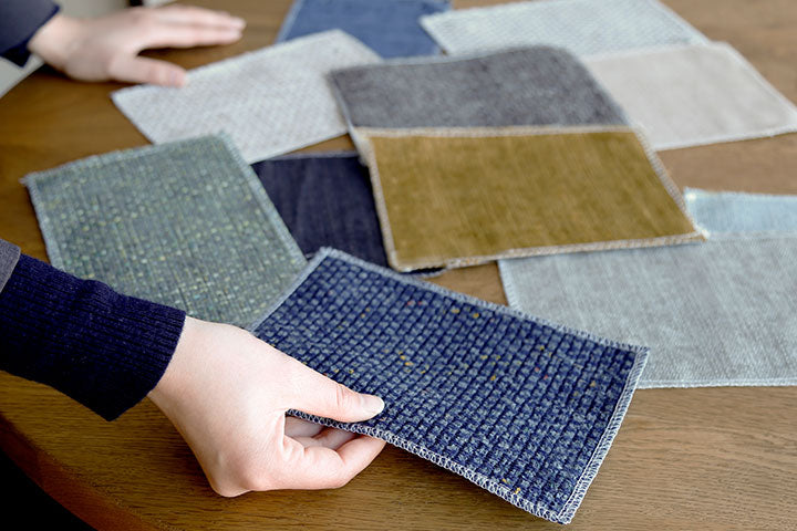 カテゴリーごとに生地の素材や織り方が異なります。糸の一本一本から、ソファ全体が纏う雰囲気までを計算しデザインされました。